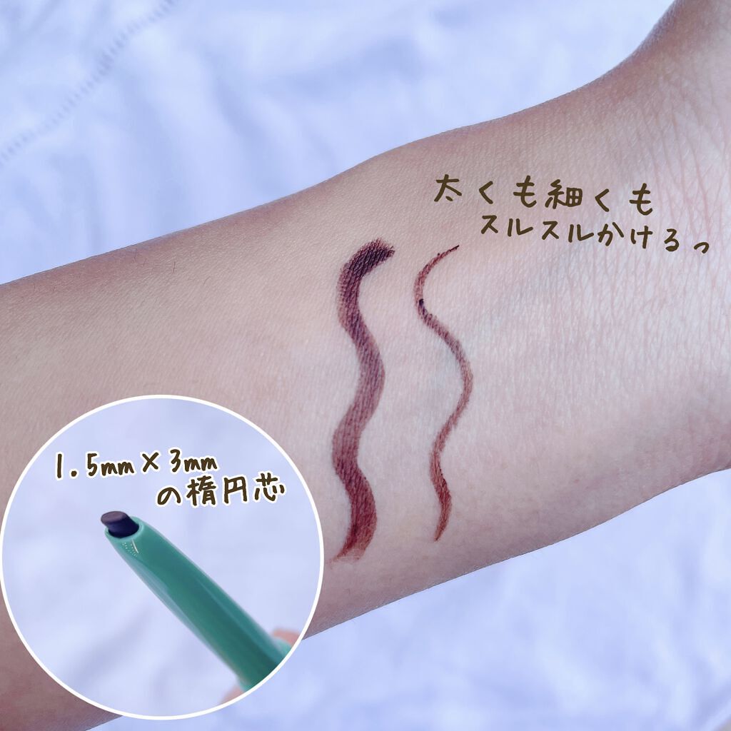 - なめらかなのに、にじみにくい クリームペンシル楕円芯タイプ ・細くも太くも自在に描ける1.5mm×3mmの楕円芯 ・自然なラインが長時間続く*スーパーウォータープルーフタイプ ・肌当たりが非常にやさしく、なめらかに描ける処方を採用 *効果には個人差があります