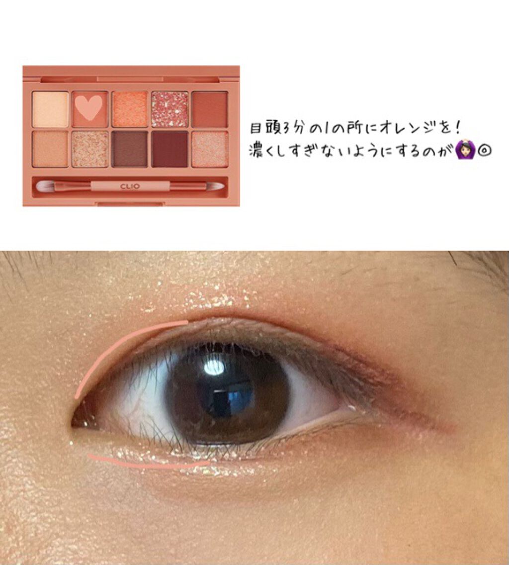 #盛れた【誰でも簡単おれんじめいく🍊🧡】使用するのは#クリオプロアイパレットの04番、#ストリートブリックです!!メイクのやり方は写真で詳しく載せているのでそちらをご覧下さい(¨̮)💟難しそうに見えて意外と簡単にできて超可愛いメイク!🥺このパ...