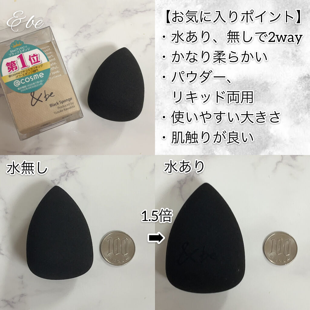 #&be#ブラックスポンジ#アンドビーの商品を初めて買ってみました正直パフってどれも同じじゃないの?って思ってたけど全く違う!!こちらは表面をスムース加工した#ウレタン製#パフに#ヒアルロン酸を配合パフの摩擦ストレスを極力減らすことでメイクを...
