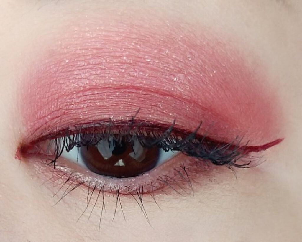 アイメイクは上まぶたは①のアイボリーをまぶた全体、②のローズをアイホール、目尻に③の赤を入れたら、④の赤ラメを更に目尻に重ね、最後に①のアイボリーと②のローズの境目付近を⑤のベージュでぼかしました。 Too Facedのコスメはただでさえ可愛いのに、大好きな赤系のアイシャドウが詰まっていて私得なアイテムです。 Too Facedのアイシャドウは発色&モチも良くて、可愛いだけじゃないところも好きな理由の一つです。