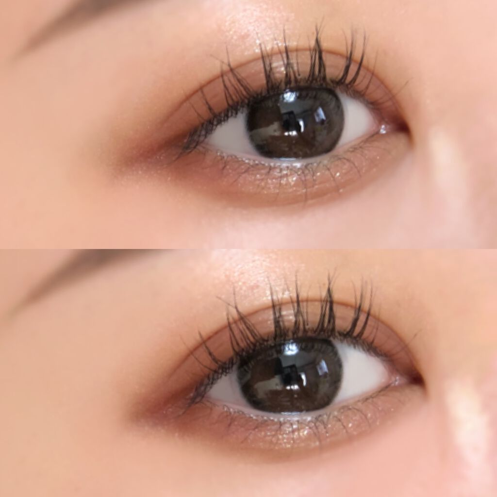 これを塗るのと塗らないのとでは本当に仕上がりが全然違って、粘性のある液がまつ毛に束感を出してくれるのでビューラーする時自然に扇状にセパレートしてくれます…! ビューラーの角度は斜めで、下に少し引っ張るように(※まつ毛が抜けないよう優しく!)、根元・中間・毛先に分けてビューラーします。これを大体3〜4回繰り返します! これを塗るとカールキープ力がすごく上がる…!ユニバで開園から閉園間際まで大はしゃぎしても全然下がりませんでした! 余分な液がついているとその重さで下がりやすくなってしまうため、マスカラコームでまつ毛を梳かしていきます! 上まつ毛に2度塗り、下まつ毛に1度塗りします。私は求心顔を緩和させたいので目頭側には塗らず、目尻側を中心に塗っています。