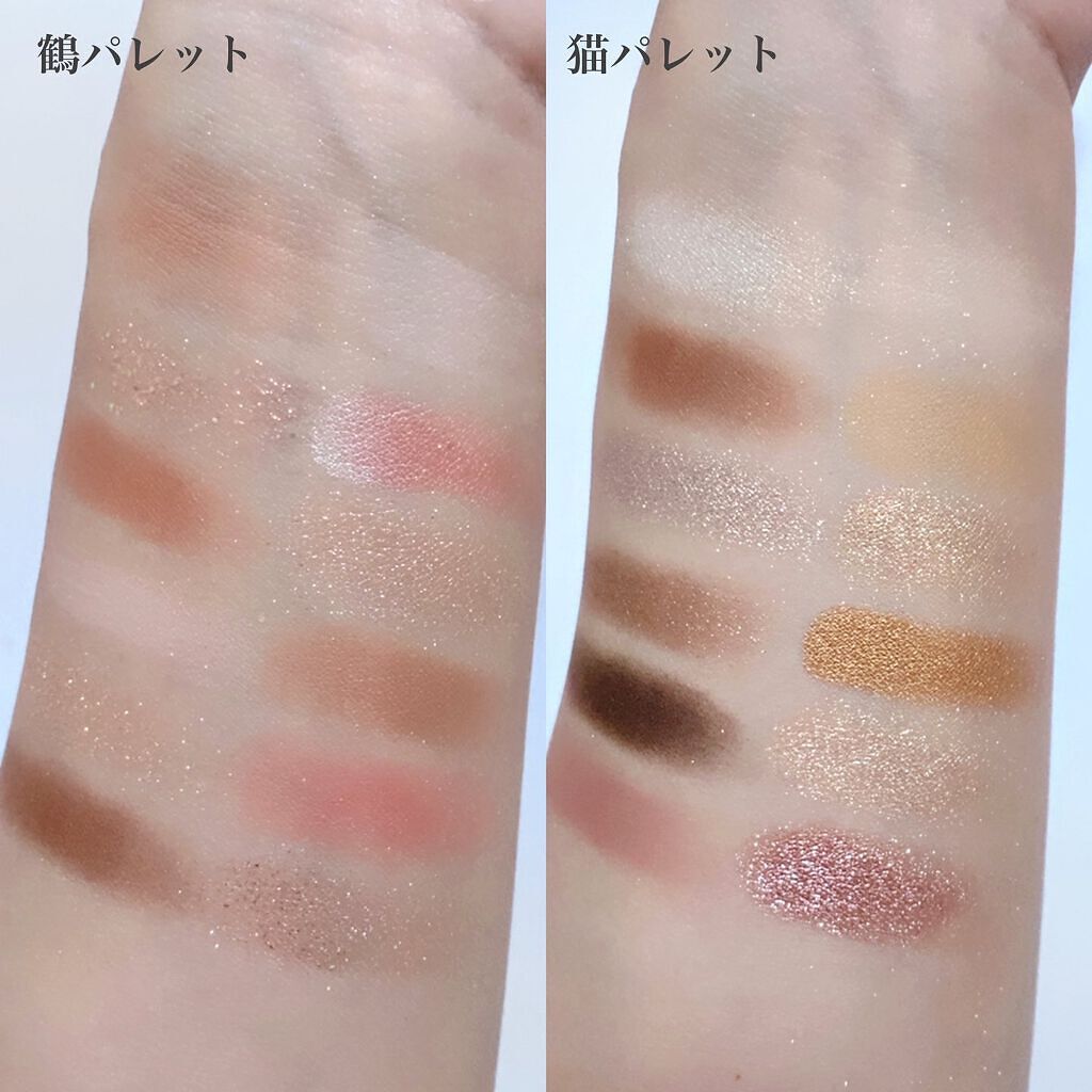 - #1.「SNSで話題になったシリーズ」 2021年のTmallで年間900万件の売り上げで、中国のSNSで超話題になりました。 #2.「4種類粉感」 滑らかマット、キラキララメ、モチモチベース状、ラメがついているマット色、多彩なカラーの組み合わせ、きめ細かい質感、肌に高密着で長持ち。 <虎> 虎からインスピレーションを受けたアニマルアイシャドウパレット。力強く活発なオレンジ・ゴールドをメインに、滑らかマット、キラキラグリッターなど多彩なテクスチャーとカラーの組合せで思い通りのメイクが完成。 <パンダ> ふんわりパンダのようなベージュ・ベビーピンクカラーや、パンダが住む竹林を表現したグリーンカラー。自由で愛らしいパンダからインスピレーションを受けたパレットで、かわいらしい印象も大人っぽい印象も1枚で叶える。 <猫> 猫からインスピレーションを受けたアニマルアイシャドウパレット。上品で落ち着いたブラウンとミステリアスなピンクパールがポイント。滑らかマット、キラキラグリッターなど多彩なテクスチャーとカラーの組合せで思い通りのメイクが完成。 <タンチョウ鶴> 鶴からインスピレーションを受けたアニマルアイシャドウパレット。使いやすいピンクベージュ系のカラーと鶴の頭をイメージした赤×白がインパクトを与える。滑らかマット、キラキラグリッターなど多彩なテクスチャーとカラーの組合せで思い通りのメイクが完成。 <赤狐> 赤狐からインスピレーションを受けたアニマルアイシャドウパレット。イエベ向きのオレンジブラウン系のカラーをメインに、滑らかマット、キラキラグリッターなど多彩なテクスチャーとカラーの組合せで思い通りのメイクが完成。狐のしっぽを再現したデザインもカワイイ。 <ラッキーラビット> うさぎからインスピレーションを受けたアニマルアイシャドウパレット。白うさぎのキュートさと透明感が再現できる赤・ピンク系の配色。滑らかマット、キラキラグリッターなど多彩なテクスチャーとカラーの組合せで思い通りのメイクが完成。 <虎&猫> 猫のしなやかさ、虎の眼光。一つのパレットで操る、二つの表情。 「猫と虎」にインスパイアされたデュアルアイメイク:「猫ルック」のしなやかな優しさ、「虎ルック」のクールな眼差し。気分に合わせて自由にスイッチ。 「ソフトブラウン × 繊細な煌めきで、優美なキャットアイを。」 「ディープスモーキー × シャープなラインで、力強いタイガーアイを。」 <オータムチェスナット> 秋の野を映し出す赤茶色と栗色のメイクで、秋冬ならではの温かみのあるカラースケールを演出。 ソフトマット、シマー、メタリックが交わり溶け合う、多彩な質感。濃厚さの中に軽やかさも。 単色でも、重ねても美しく。多様なスタイルを叶えます。