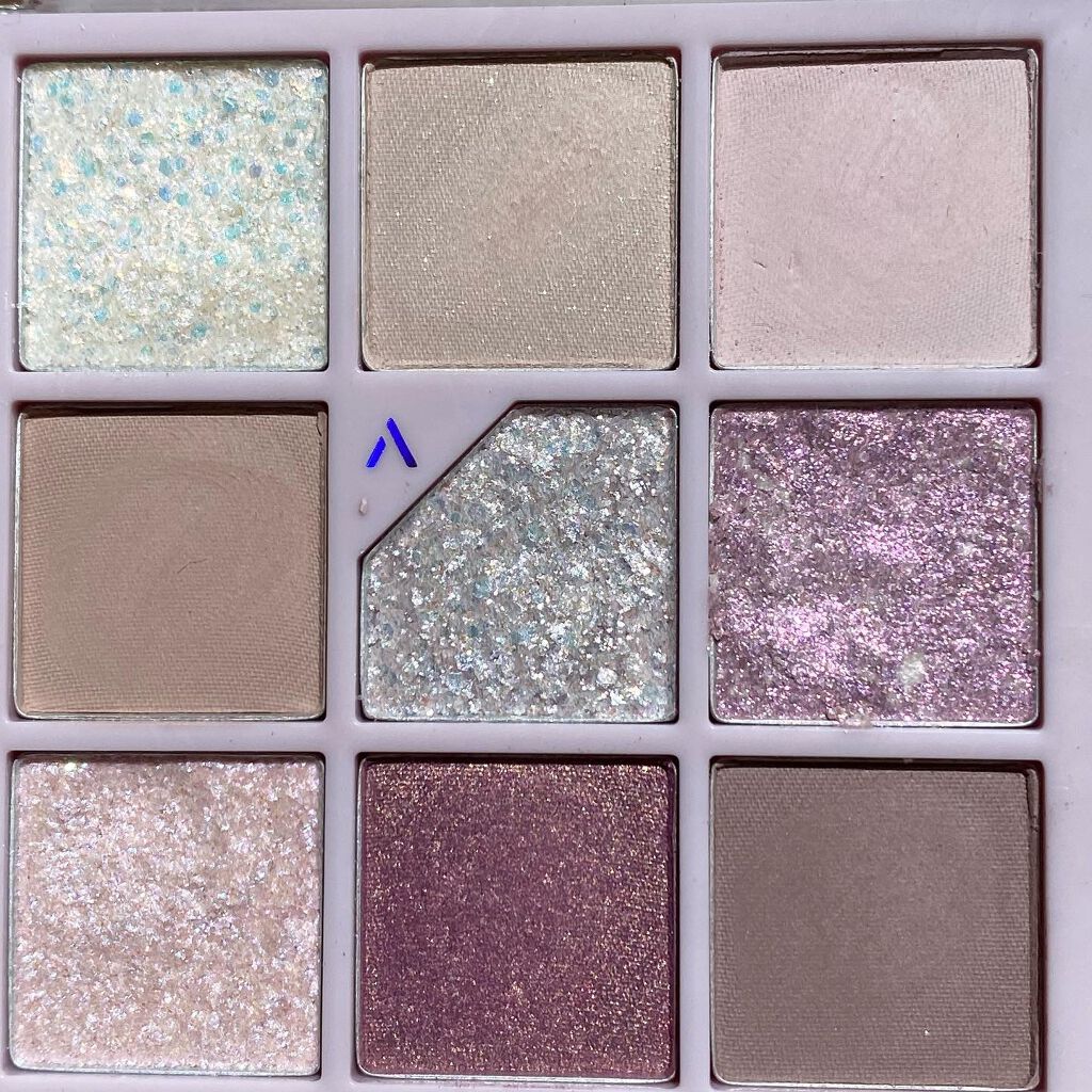 ラメ好きにはたまらないアンリシアのラベンダーパレット🎨💜 No.4 オールラベンダーフォグはくすみのあるグレーやラベンダーカラーを中心とした配色で、大小様々なグリッターやラメも入っているので色んなメイクが出来そう! 目元にのせると見た目より派手さはないので普段使いにも◎
