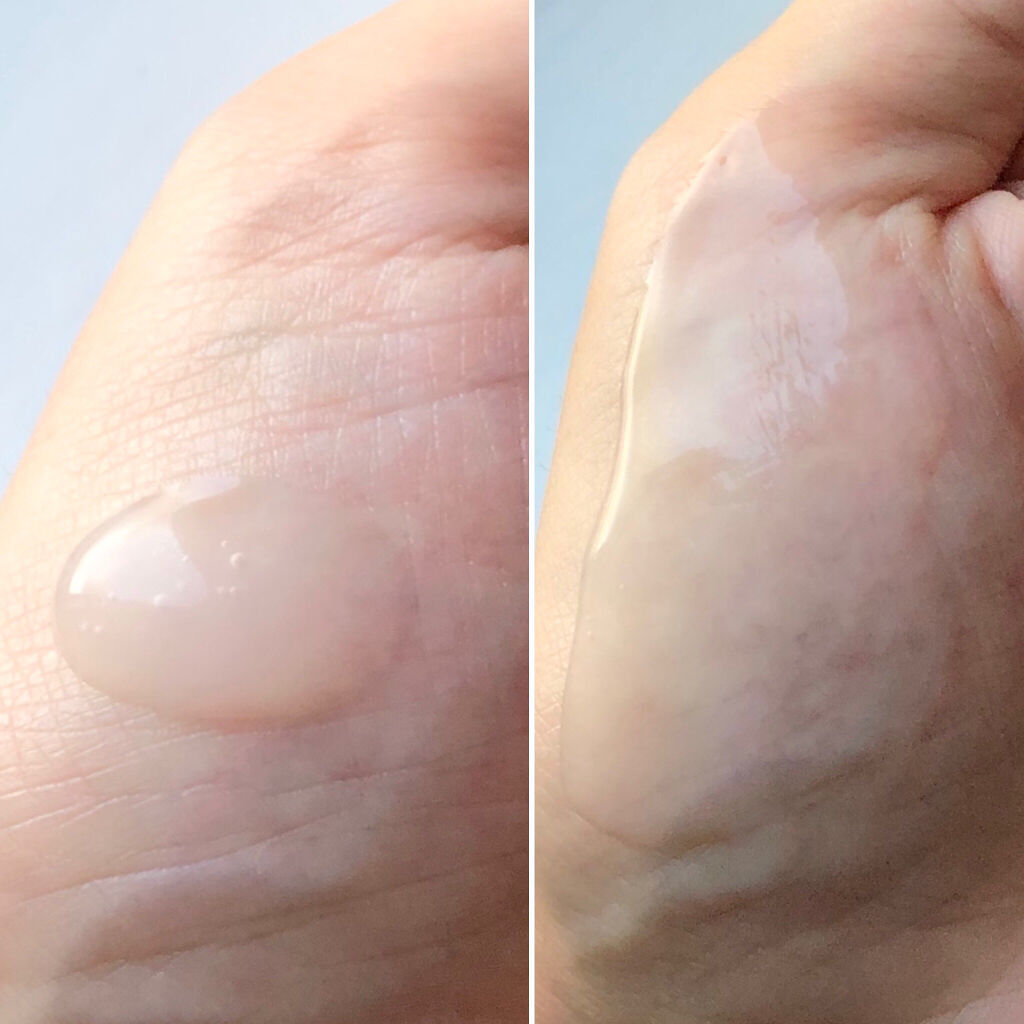 スーッと肌に伸び広がっていく感じが心地良く、肌馴染みの良さに感動!🥺 みずみずしいテクスチャーで伸びが良く顔全体に馴染ませやすいです。 グリーンフローラルのほのかな香りも爽やかで癒されます。 つけた後の肌が潤いは感じるのにべたつきがなく、すべすべになるのが一番のお気に入りポイント👍 軽いつけ心地でありながら、保湿力に物足りなさがないのが素晴らしい~♪ 乾燥対策としても良さそうですし、使い続けることでくすみ肌を明るく透明感のある肌へ導いてくれそうな気がしました❤️ スポイトの先端を真下に向け、スポイトを押すと美容液が出てくるという珍しい形状も高級感があり◎ 少し出しづらさはありますが気にならない程度👍 指紋が目立たないのも個人的には高ポイント。