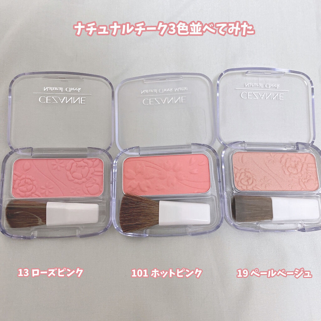 ナチュナルチークN/セザンヌお久しぶりです!依奈です受験勉強に忙しくて中々投稿出来ていませんでした📚✍🏻新しく13、19をお迎えしたので持っていたら101を合わせてレビューします🌸101同じピンク系の右上の13比べて見るとこちらの方が高発色で...