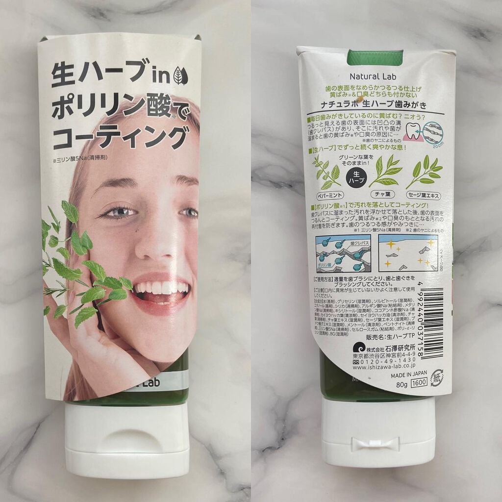 珍しい感じの歯磨き粉🦷👀 緑色〜!😳 生ハーブでお口の中をスッキリしてくれ、ポリリン酸で汚れを落とした後、歯の表面をつるんとコーティングしてくれるそうです! 味はなんだか独特な感じだけど😅💦効き目ありそうな感じがする😳 使ったあと、ほんとつるつるしてました✨