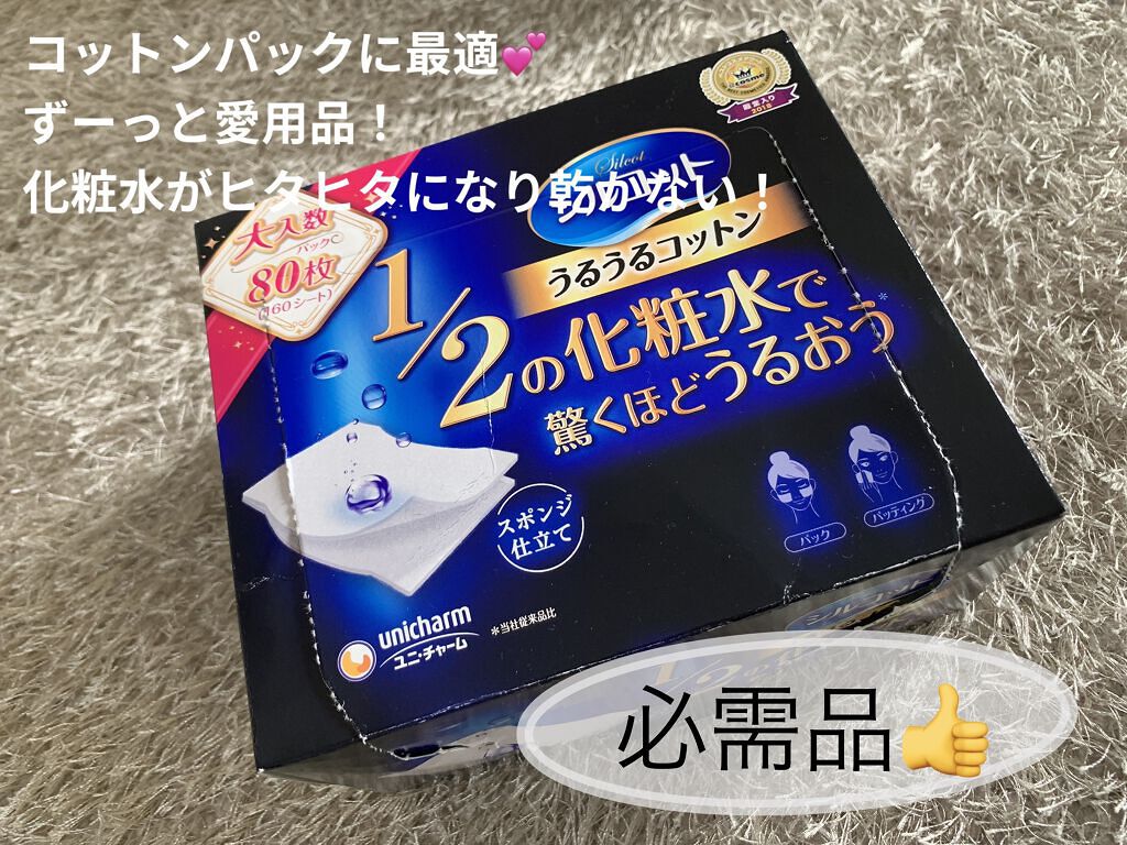 シルコット うるうるコットン80枚1/2の化粧水で驚くほど潤う化粧水の出てくる量がシルコットの2倍以上で、コットン本体に化粧水を殆ど残しません。パッテイングしても、はがしても、パックしても毛羽立たず、やわらかじゅわっと染み出るスポンジ構造採用...