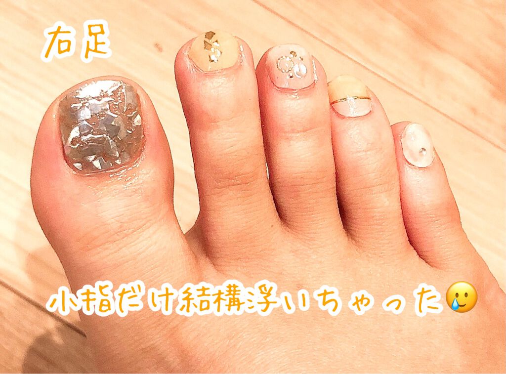 やさしいピンクと透け感が涼しげな雰囲気! キラキラしてて足元でもほどよい存在感でした✨ スリコの硬化ネイルシール!フットネイルは自然光で硬化しても剥がれにくくて長持ち!いつも1週間くらい貼りっぱなしで過ごしています😊オフはお風呂上がりに剥がす...