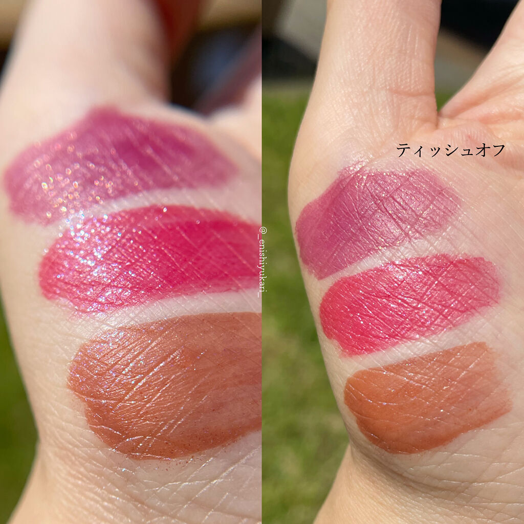 - Point 1 ジューシーなもぎたて果実のような発色が長時間続く Point 2 キラキラ輝くスパークリングジュエリーパウダー配合 Point 3 リップケアオイル配合で、クリアな光沢感のある仕上がり RD03、CR02は公式オンライン限定発売