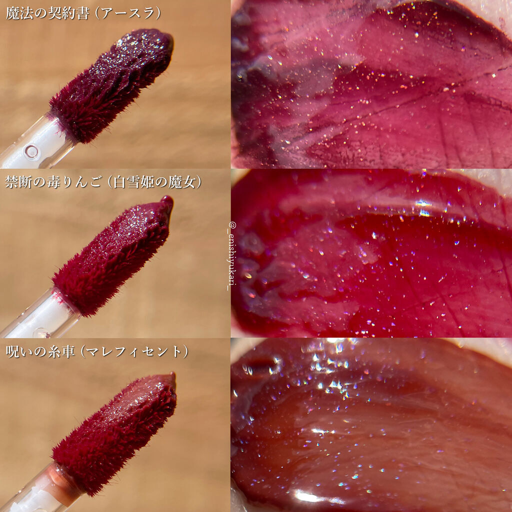 - <JBR01 呪いの糸車(マレフィセントデザイン)> 水、ジフェニルジメチコン、リンゴ酸ジイソステアリル、ビスジグリセリルポリアシルアジペート-2、オクチルドデカノール、水添ポリイソブテン、ダイマージリノール酸ダイマージリノレイルビス(ベヘニル/イソステアリル/フィトステリル)、ジグリセリン、DPG、セチルPEG/PPG-10/1ジメチコン、イソステアリン酸ソルビタン、ポリソルベート60、ペンチレングリコール、(アクリル酸ヒドロキシエチル/アクリロイルジメチルタウリンNa)コポリマー、セテアレス-20、ホウケイ酸(Ca/Al)、スクワラン、酸化チタン、グリセリン、ポリグリセリン-3、ステビオシド、ホウケイ酸(Ca/チタン)、エチルヘキシルグリセリン、トリ(カプリル酸/カプリン酸)グリセリル、ハチミツエキス、酸化スズ、ルビー末、パール、バラエキス、リンゴ果実エキス、BG、1,2-ヘキサンジオール、モモ果実エキス、フェノキシエタノール、黄4、赤227、黄5、青1、香料 <JRD02 禁断の毒りんご(白雪姫の魔女デザイン)> 水、ジフェニルジメチコン、リンゴ酸ジイソステアリル、ビスジグリセリルポリアシルアジペート-2、オクチルドデカノール、水添ポリイソブテン、ダイマージリノール酸ダイマージリノレイルビス(ベヘニル/イソステアリル/フィトステリル)、ジグリセリン、DPG、セチルPEG/PPG-10/1ジメチコン、イソステアリン酸ソルビタン、ポリソルベート60、ペンチレングリコール、ホウケイ酸(Ca/Al)、(アクリル酸ヒドロキシエチル/アクリロイルジメチルタウリンNa)コポリマー、セテアレス-20、スクワラン、グリセリン、酸化鉄、ポリグリセリン-3、ステビオシド、エチルヘキシルグリセリン、酸化チタン、トリ(カプリル酸/カプリン酸)グリセリル、ハチミツエキス、酸化スズ、ルビー末、パール、バラエキス、リンゴ果実エキス、BG、1,2-ヘキサンジオール、モモ果実エキス、フェノキシエタノール、赤227、黄5、赤104(1)、香料 <JVL01 魔法の契約書(アースラデザイン)> 水、ジフェニルジメチコン、リンゴ酸ジイソステアリル、ビスジグリセリルポリアシルアジペート-2、オクチルドデカノール、水添ポリイソブテン、ダイマージリノール酸ダイマージリノレイルビス(ベヘニル/イソステアリル/フィトステリル)、ジグリセリン、DPG、セチルPEG/PPG-10/1ジメチコン、イソステアリン酸ソルビタン、ポリソルベート60、ペンチレングリコール、(アクリル酸ヒドロキシエチル/アクリロイルジメチルタウリンNa)コポリマー、セテアレス-20、グリセリン、スクワラン、ホウケイ酸(Ca/Al)、酸化鉄、酸化チタン、合成フルオロフロゴパイト、ポリグリセリン-3、ステビオシド、エチルヘキシルグリセリン、トリ(カプリル酸/カプリン酸)グリセリル、ハチミツエキス、酸化スズ、ルビー末、パール、バラエキス、リンゴ果実エキス、BG、1,2-ヘキサンジオール、モモ果実エキス、フェノキシエタノール、赤227、黄5、青1、香料 <BE02 おねだりグアバ(オーロラ姫デザイン)> ジフェニルジメチコン、水、リンゴ酸ジイソステアリル、ビスジグリセリルポリアシルアジペート-2、オクチルドデカノール、水添ポリイソブテン、ダイマージリノール酸ダイマージリノレイルビス(ベヘニル/イソステアリル/フィトステリル)、ジグリセリン、セチルPEG/PPG-10/1ジメチコン、DPG、イソステアリン酸ソルビタン、ポリソルベート60、ペンチレングリコール、ホウケイ酸(Ca/Al)、(アクリル酸ヒドロキシエチル/アクリロイルジメチルタウリンNa)コポリマー、酸化チタン、グリセリン、セテアレス-20、スクワラン、ポリグリセリン-3、ステビオシド、エチルヘキシルグリセリン、トリ(カプリル酸/カプリン酸)グリセリル、ハチミツエキス、モモ果実エキス、酸化スズ、BG、ルビー末、パール、リンゴ果実エキス、バラエキス、1,2-ヘキサンジオール、フェノキシエタノール、黄5、赤227、赤104(1)、黄4、青1、香料 <CR01 オトメなナツメ (白雪姫デザイン)> ジフェニルジメチコン、水、リンゴ酸ジイソステアリル、ビスジグリセリルポリアシルアジペート-2、オクチルドデカノール、水添ポリイソブテン、ダイマージリノール酸ダイマージリノレイルビス(ベヘニル/イソステアリル/フィトステリル)、ジグリセリン、DPG、セチルPEG/PPG-10/1ジメチコン、イソステアリン酸ソルビタン、ポリソルベート60、ペンチレングリコール、ホウケイ酸(Ca/Na)、酸化チタン、(アクリル酸ヒドロキシエチル/アクリロイルジメチルタウリンNa)コポリマー、グリセリン、セテアレス-20、スクワラン、ポリグリセリン-3、ステビオシド、エチルヘキシルグリセリン、トリ(カプリル酸/カプリン酸)グリセリル、酸化スズ、ハチミツエキス、青1、モモ果実エキス、BG、パール、ルビー末、バラエキス、リンゴ果実エキス、1,2-ヘキサンジオール、フェノキシエタノール、黄5、赤227、赤104(1)、香料 <RD01 いちころライチ(アリエルデザイン)> ジフェニルジメチコン、水、リンゴ酸ジイソステアリル、ビスジグリセリルポリアシルアジペート-2、オク