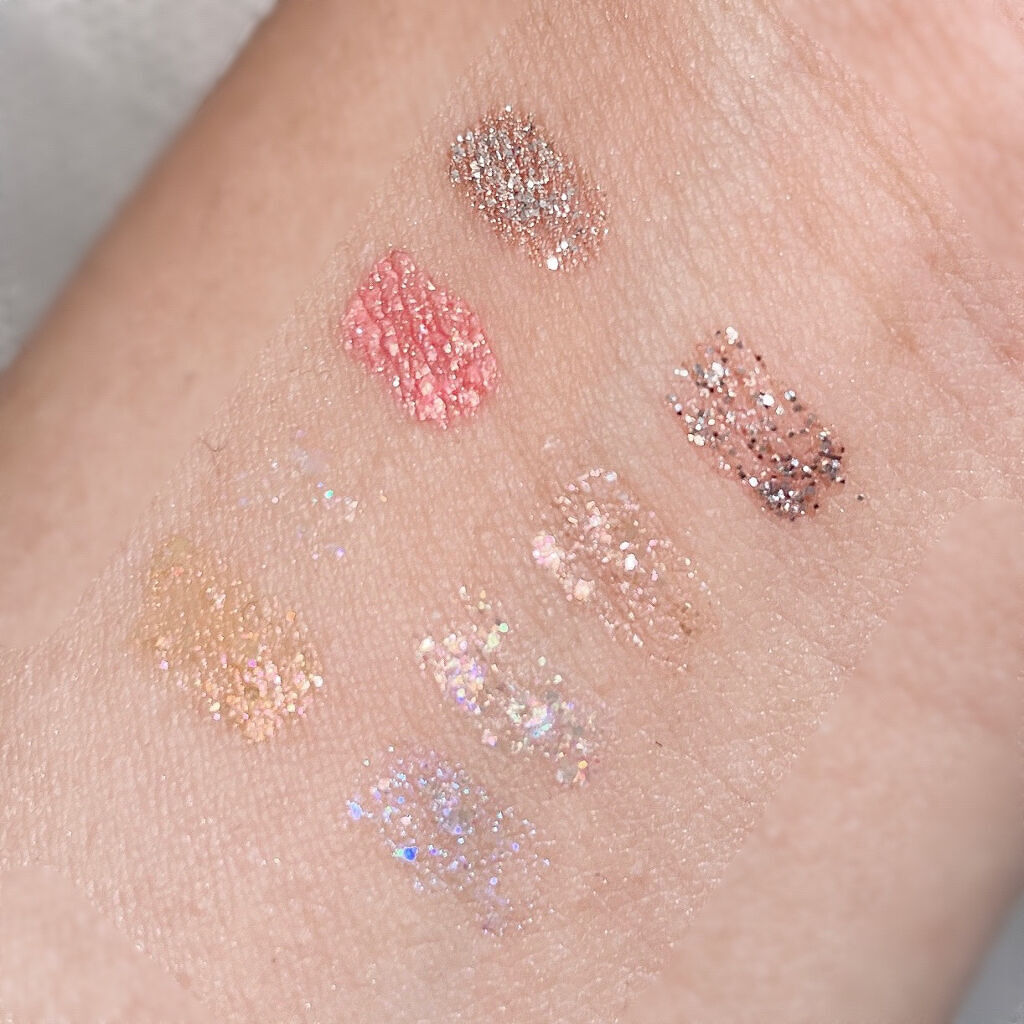 細かいラメと大きめのホログラムが混じっています꒰ˆ•ﻌ•ˆ꒱ 瞬きする度にキラキラしてかわいいです。 よく見ると色々なカラーのラメでてきていますがつけると自然ですฅʕ •ﻌ• ʔฅ