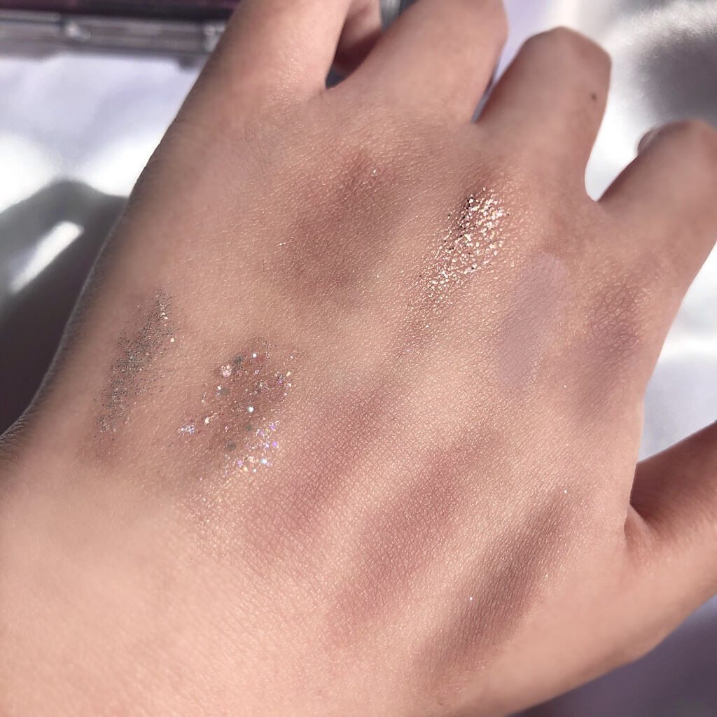 - ひとつのパレットにマット、シマー、グリッターなど多様な質感を贅沢に使用。塗る順序やカラーの組み合わせを変えるだけでデイリーメイクにも、特別な日のお出かけメイクにもできる優れもの。また粉飛びせず、まぶたにしっかり密着します。