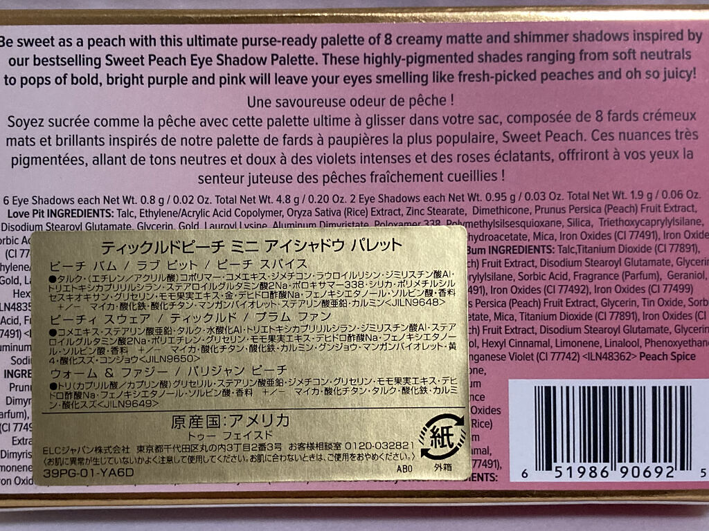 商品詳細情報Too Faced ティックルドピーチ ミニ アイシャドウ パレット