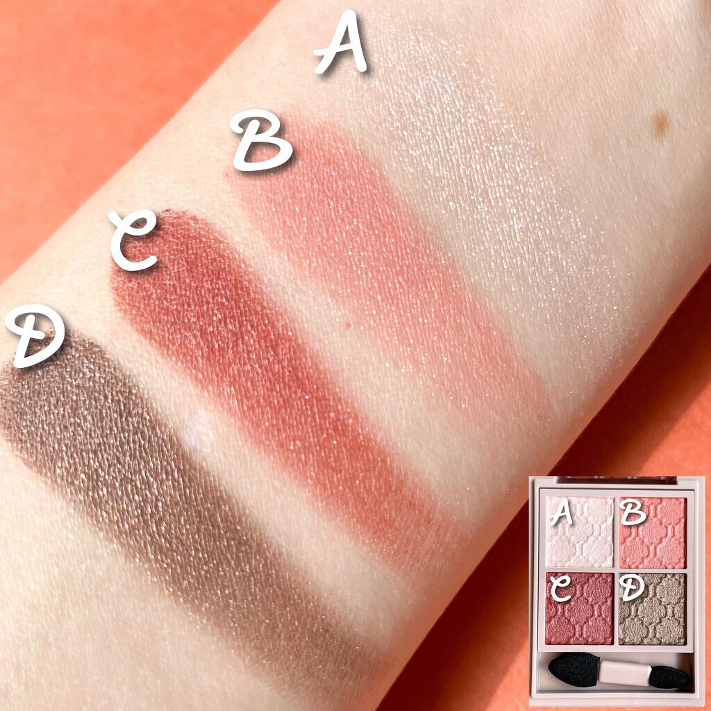 - 上質なツヤめきとクリアな発色がとけこみ、大人のうるみ目を叶える4 色セットアイカラーです。 しっとりタッチのクリーミィベース×3 色のグラデーションカラーで印象的な目もとに仕上げます。 美容液成分配合。メイクしながらうるおいを保ちます。 無香料 美容液成分〔ヒアルロン酸・スクワラン〕(保湿)