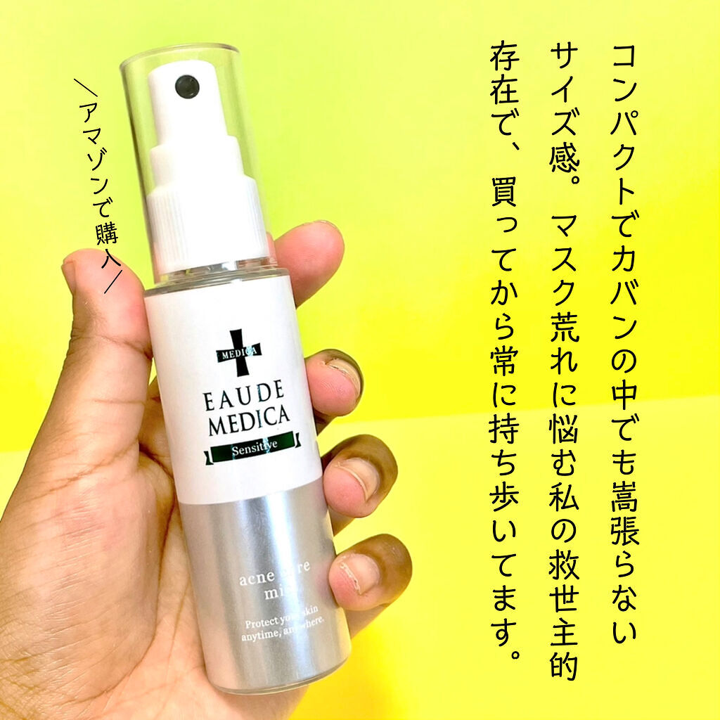 - ニキビやマスクで荒れたお肌を手軽にケアすることができる、シンプル処方のポータブルサイズミストです。 1.ニキビ、マスクによる肌トラブルに緊急レスキューミスト 有効成分:グリチルリチン酸ジカリウム(抗炎症)を配合。薬用ミストの確かな効果をご実感いただけます。 2.どこでも1本でケアできる高い利便性 ポータブルサイズのミストはカバンに入れての持ち運びも◎。 べたつかない使用感でメイクの上からでもOK。 さらっと速乾性はすぐにマスクをつけても不快感ゼロです。 スッキリとしたティーツリー由来の香りでリフレッシュ効果も。 3.Sensitive(敏感)な肌に嬉しいFREE処方 無着色 無鉱物油 弱酸性