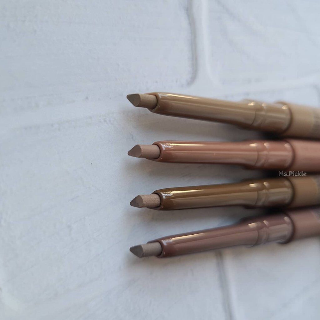 - 描き足しながらぼかせる。 ペンシルとパウダーを一つの芯にまとめた 2層芯アイブロウ ●しずく型2色グラデ芯で、自眉となじむ自然な仕上がり ー角の濃いカラーで、1本1本毛を描き足せるような細いラインを実現 ー面の淡いカラーで、自然にぼかしたような仕上がりを実現 ●毛流れを整え、自然になじませるスクリューブラシつき ●ウォータープルーフ処方 ●汗、皮脂、こすれに強く、美しい仕上がりが長時間持続 ●トリートメント成分配合 ースクワラン ●無香料 ●アレルギーテスト済(すべての方にアレルギーが起きないというわけではありません) <使い方> ●芯を2mm程度繰り出してお使いください。 ●芯の角で眉毛を1本1本描き足し、眉頭や輪郭は芯の面の部分でなじませるようにぼかします。 ●芯の出しすぎや落下などの衝撃により折れることがありますのでご注意ください。 ●ご使用後は、芯をもとにくり戻しキャップをきちんとしめてください。 ●ブラシはいつも清潔にしてお使いください。 ●日のあたるところや高温のところにおかないでください。 ●まれに芯の表面に白い粉のようなものがみられますが、品質上問題はありません。