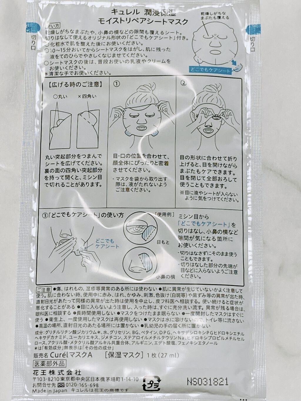 商品詳細情報キュレル 潤浸保湿 モイストリペアシートマスク