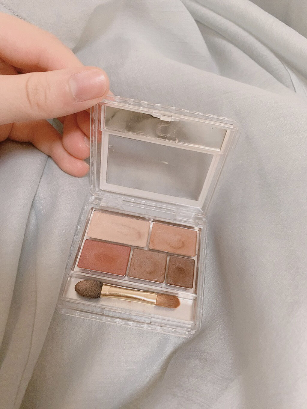 見た目も色も可愛い!!!!! マジで可愛すぎる色味✨ 特に下の段のマットアイシャドウ3つが目に塗った時に可愛い!! ラメも使いやすいやつ入ってるし、下のグリッターも色が素敵〜