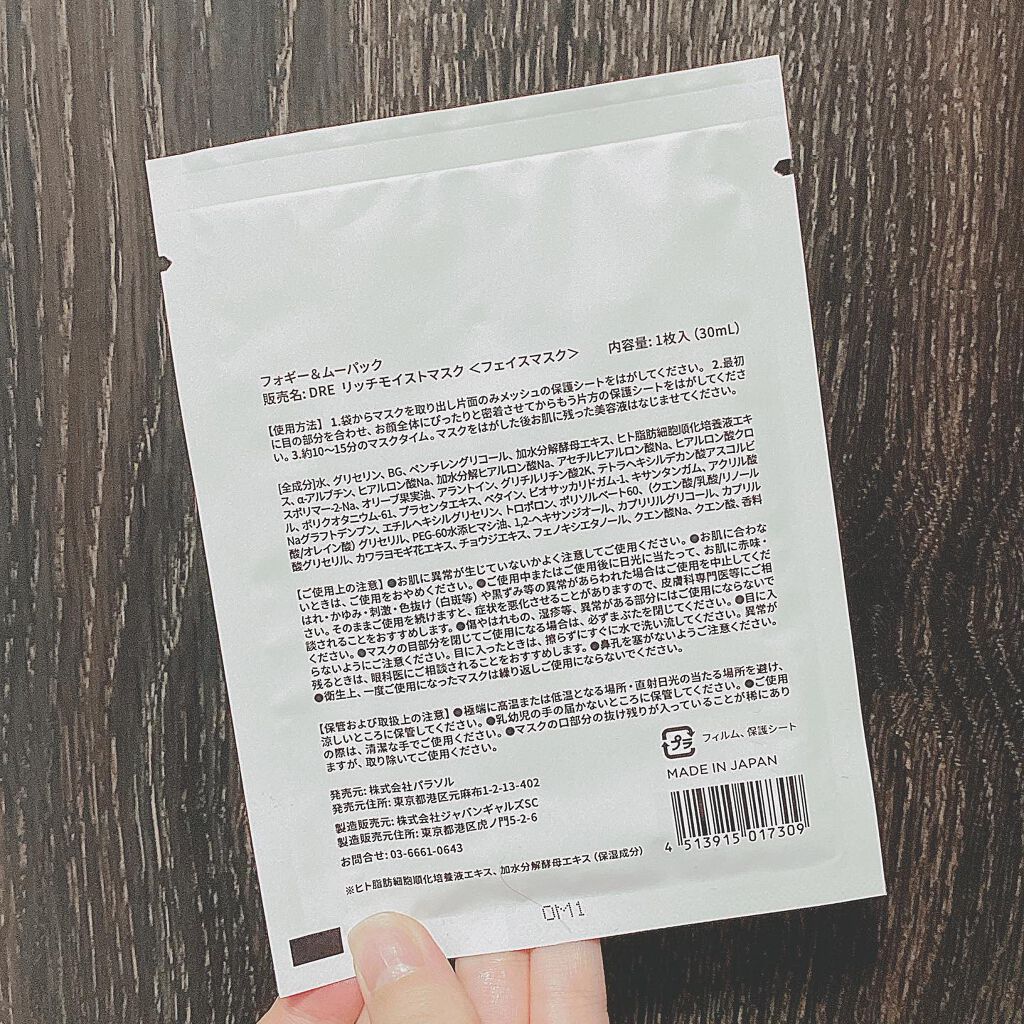 保湿成分として、ヒト脂肪幹細胞順化培養液エキス・SARABiO温泉微生物研究所の独自成分、温泉酵母(加水分解酵母エキス)・ツボクサエキス 配合 シートが薄めのナタデココみたいで、プルンプルンでぴたっと密着し心地よいです。 剥がすと、潤うからか透明感が出て表面はべたつきなく中がしっとりした使い心地です。