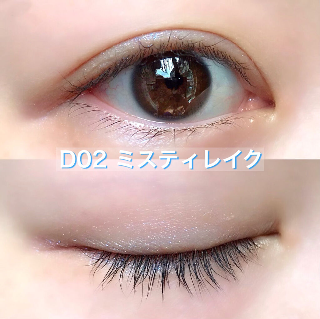 excelアイプランナーD02ミスティレイク¥990D02はDAZZLEタイプ 大粒偏光パール入りで透明感のある 神秘的な輝きのアイスブルー程よい発色で華やかだけどさりげないラメで上品に夏にぴったりの爽やかなカラー手持ちのアイシャドウにプラス...