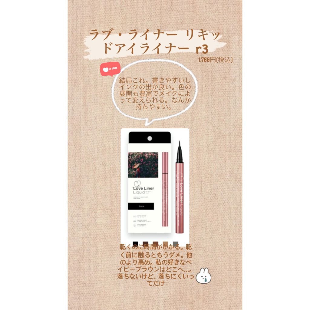 | メイクアップランキング第71位 | ラブライナーのアイライナーってほんと描きやすいから好き!重みのあるアルミボトルもお洒落な上に使いやすい | 詳細を見る | |