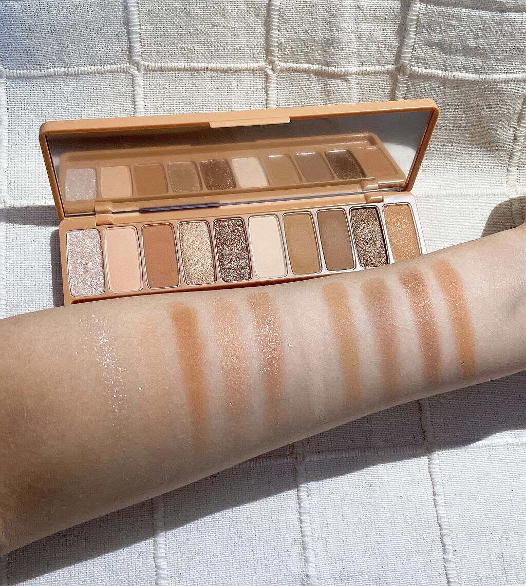 - 肌なじみの良い、鮮やかな発色で目元を華やかに彩る捨て色なしの10色アイシャドウパレット 異なる3種のテクスチャーを自由に組み合わせて、グラデーションも思いのままに。 NEW 2023.4 ・肌トーンにあう配色を詰め込んだトレンドカラー 肌トーンに合わせて、自分に似合うトレンドカラーが楽しめる♡ パーソナルカラー×トレンドカラーの掛け合わせパレットで、デイリーメイクもスペシャルメイクも気分にあわせてなりたい自分に! ・むにゅっとジェル質感ラメで高密着、煌めく目元 パレットの中でもポイントとなる大きめ粒子のラメは、ジェルのような新質感で落ちにくく肌にぴったりと密着します。キラキラとした目元をキープします。 ・使うカラーは大きめに!リアル捨て色なしパレット ベースやラメのよく使うカラーと締め色や濃い色等の減りが少ないカラーを異なるサイズで詰め込んだ、リアル捨て色なしパレット! <使用方法> 付属のデュアルシャドウブラシでベースカラーをまぶた全体に塗り広げます。細いブラシでグラデーションや目尻、アイライン、涙袋などのポイントカラーをのせて仕上げます。