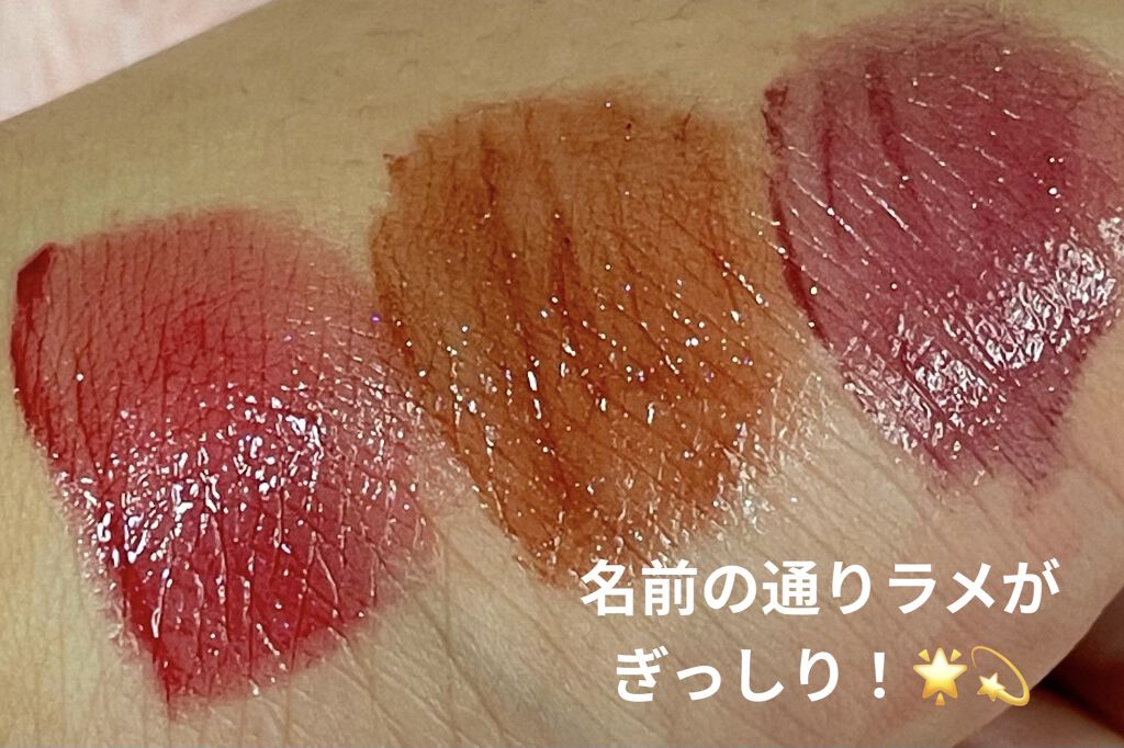 - Point 1 ジューシーなもぎたて果実のような発色が長時間続く Point 2 キラキラ輝くスパークリングジュエリーパウダー配合 Point 3 リップケアオイル配合で、クリアな光沢感のある仕上がり RD03、CR02は公式オンライン限定発売