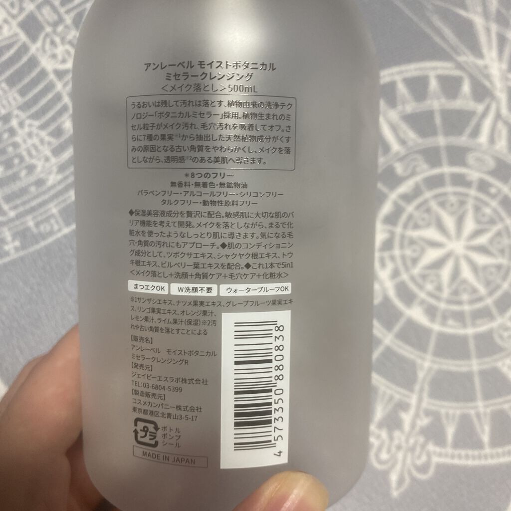 商品詳細情報unlabel モイストボタニカル ミセラークレンジングR