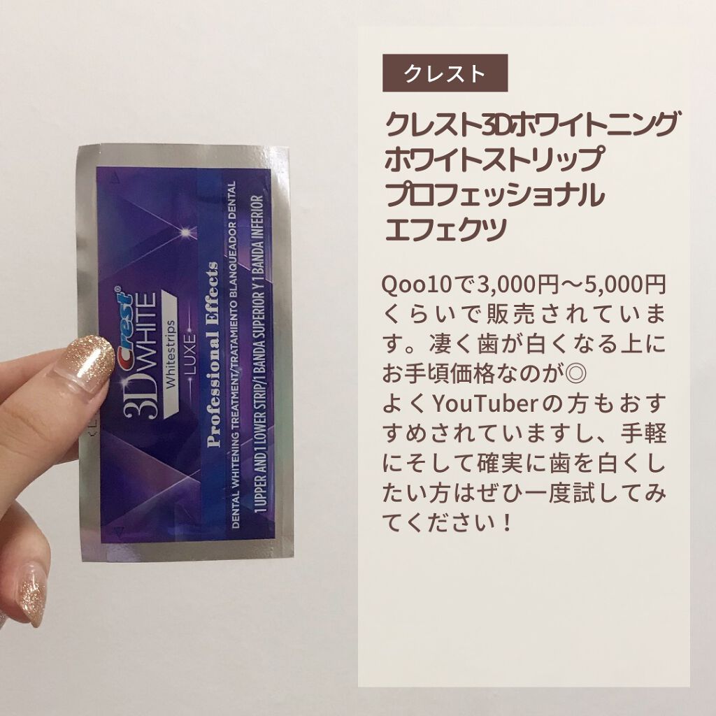 これは本当に歯が白くなっているのを実感出来る! 私の中でのナンバーワン神商品です😭 これを切らすと発狂するので常にストックが家にあるという・・・🦷 海外からの輸入でしか手に入らないのが残念ですが素敵な商品なので、気になった方はぜひ試していただけると嬉しいです! ちなみに先日投稿で紹介したCrest 3D ホワイトニングシートと合わせて使えば何もなくても思わず笑いたくなるような白い歯になることが出来るのでおすすめです。これぞ神の組み合わせよ・・・。