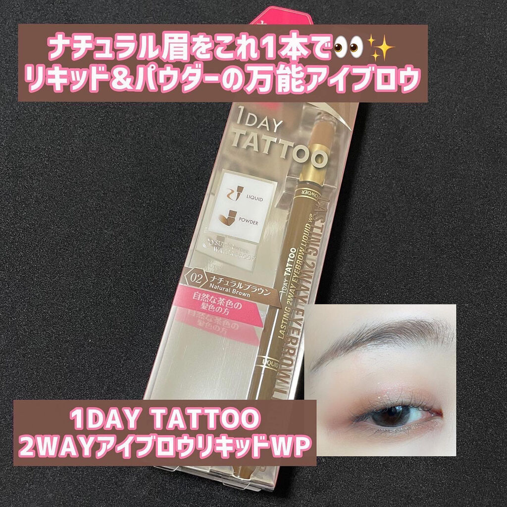 K-Palette 1DAY TATTOOシリーズのアイブロウがリニューアル登場💐 軽やかな立体美眉に仕上がる「2WAYリキッド」と、ふんわりやわらか洒落感眉に仕上がる「3WAYペンシル」🪄 どちらも自然な仕上がりだし、描きやすくて落ちにくいからお気に入り🫶🏻 「02ナチュラルブラウン」は抜け感のある自然なブラウンで使いやすいカラー🤎