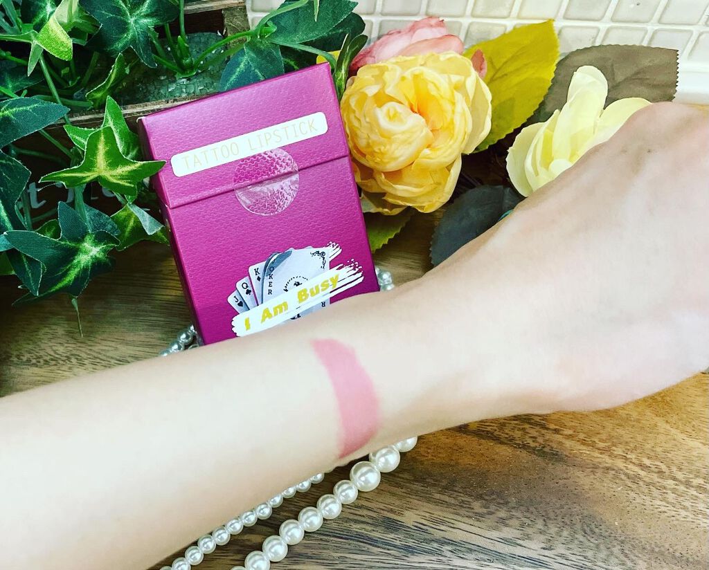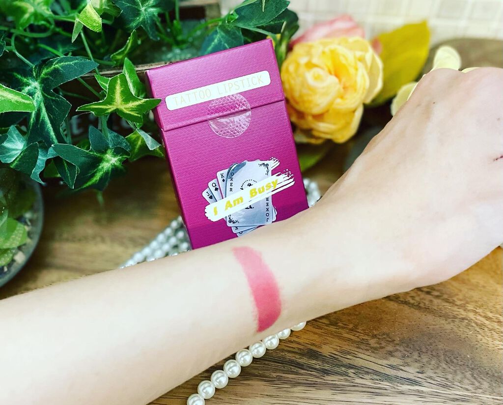 すごく可愛いパッケージで1本1本使い切りというのが使いやすい✨ 塗ってみると本当に色落ちしにくく、ご飯を食べてもお色が残っているのです! I Am Busy というお色味はアメリカンチェリーみたいな大人カラー。 テクスチャーはサラサラで塗りやすいです。 薄くベースに仕込むのも可愛いですよ💓
