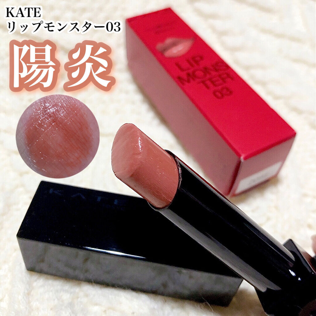 *:*:*:*:*:*:*:*KATEリップモンスター03陽炎税込1,540円*:*:*:*:*:*:*:*あらためて思った!やっぱ陽炎いい!!笑最近はセザンヌのリップカラーシールドにハマっていてずっとつけていたのですがセザンヌよりツヤ感があ...