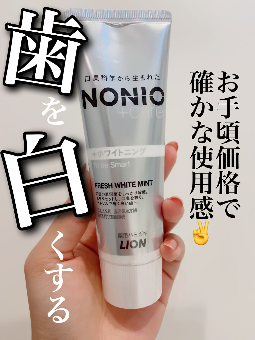 NONIONONIOプラスホワイトニングハミガキ【ホワイトニングケアの評判がよく使ってみた🦷】プチプラでいいですね!フッ素配合なのもポイントで口臭ケア美白ケアができるのもいい蓋はワンタッチ開閉ではないものの回さないでも引っ張れば抜けるタイプフ...