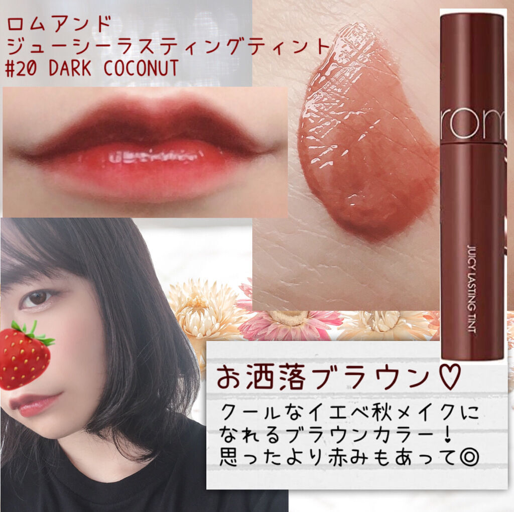 \すべてロムアンド選出/秋メイクに似合うこっくりカラーリップをお探しの方へおすすめしたいロムアンドを6本ご紹介♡ ◆ジューシーラスティングティント #13EATDOTORI ◆ジューシーラスティングティント #08APPLEBROWN ◆...