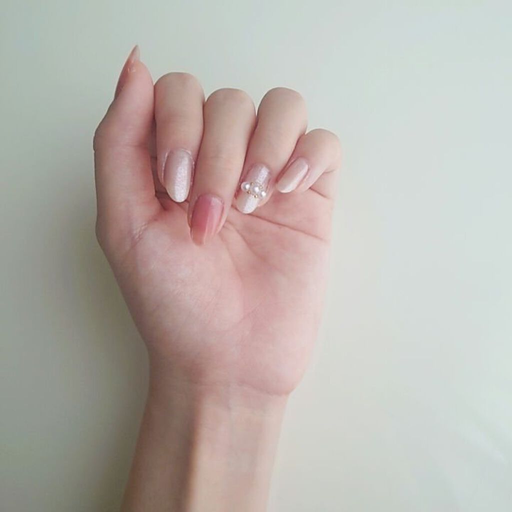 お上品なパールで可愛い☺️ 右からワンカラーのところは1~3度塗りで分けてみました! もっとお上品な感じになった☺️ オフィスネイルにもキレイめの服装にもぴったりです! ファンデーションネイル #キャンメイク #canmake #大人ネイル