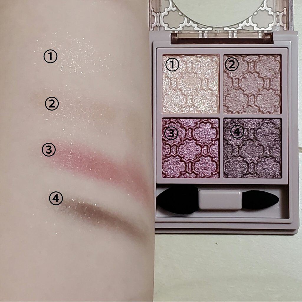 - 上質なツヤめきとクリアな発色がとけこみ、大人のうるみ目を叶える4 色セットアイカラーです。 しっとりタッチのクリーミィベース×3 色のグラデーションカラーで印象的な目もとに仕上げます。 美容液成分配合。メイクしながらうるおいを保ちます。 無香料 美容液成分〔ヒアルロン酸・スクワラン〕(保湿)
