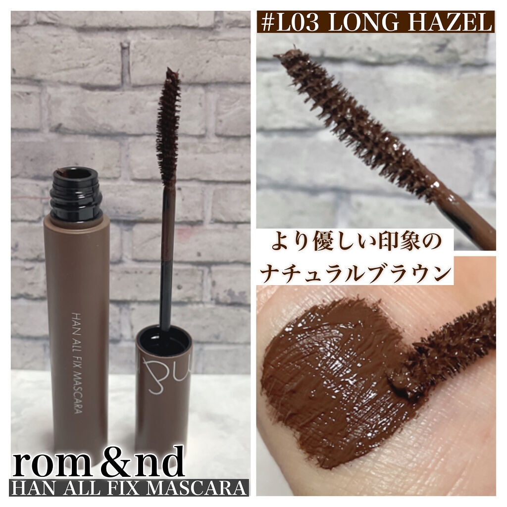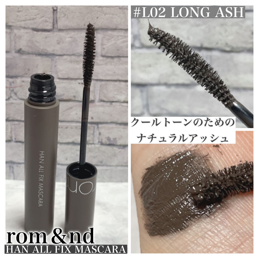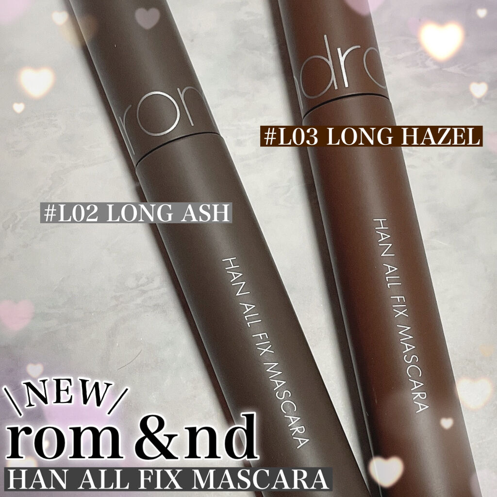☑Rom&ndHanAllFixMascaraColor:L02LongAshロムアンドのロングタイプのマスカラです!安くなっていた時に安いから買っておこうかなと購入してみたのですが思いのほか大当たり♡人気なので存在は知ってはいたけどやっぱり...