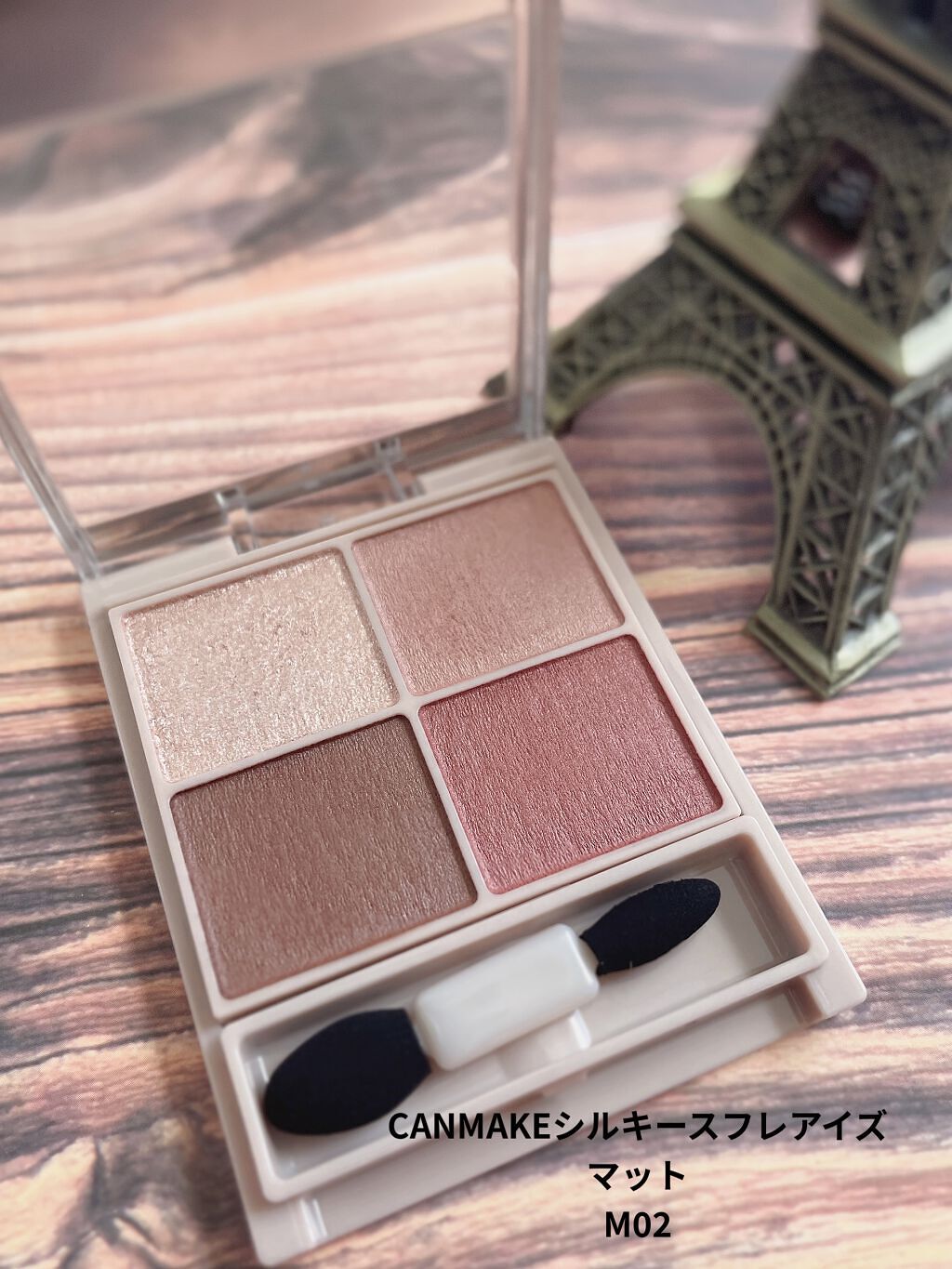 キャンメイク シルキースフレアイズマットタイプ今回はキャンメイクのシルキースフレアイズマットタイプ、"M02チャイブリック"をご紹介します✦質感✦マットアイシャドウ3色+ラメの4色パレットマットアイシャドウは韓国コスメのような完全にマットな質...
