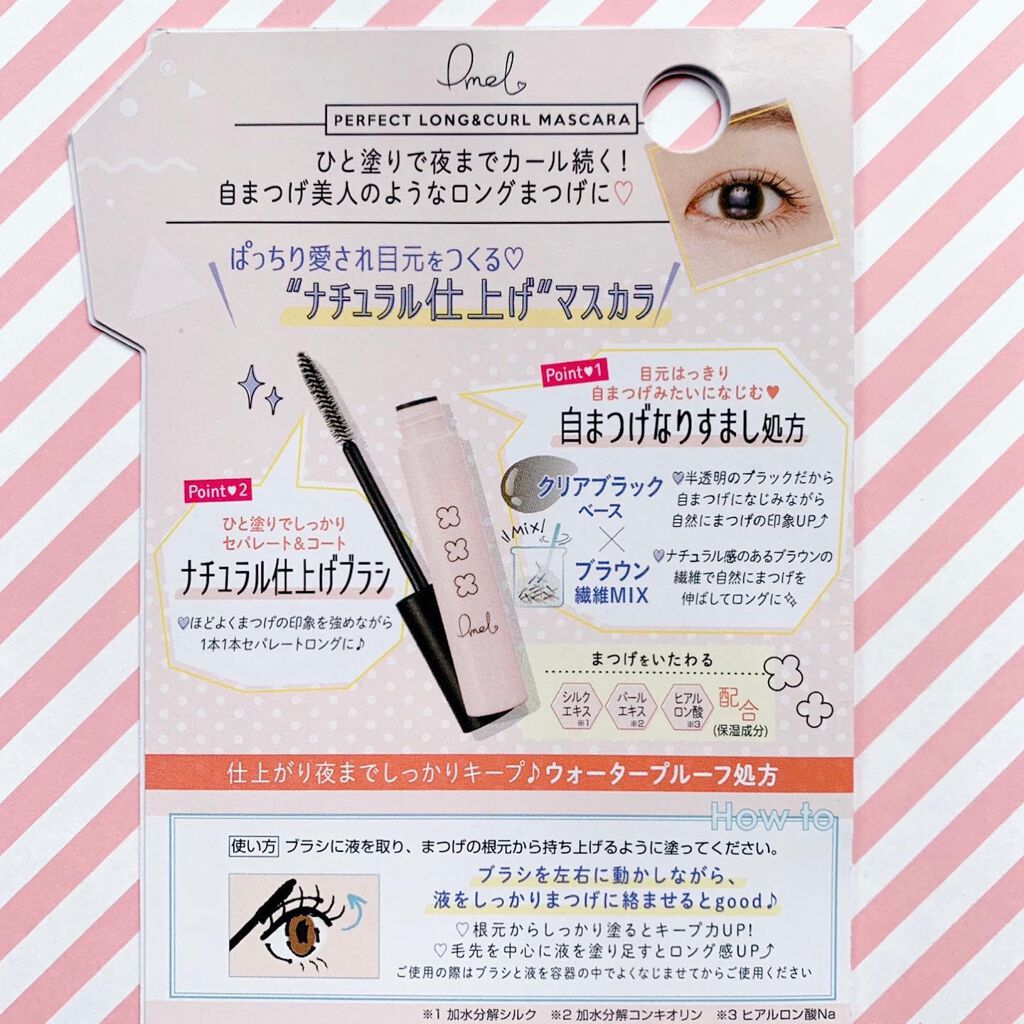 - ぱっちり愛され目元をつくる♡ “自まつげ美人仕上げ”のクリアマスカラ クリアブラックベースの液にブラウン繊維をMIX! まつげをやさしく印象づけて、抜け感のあるナチュラルロングまつげに! ■自まつげ美人をつくる♡自まつげなりすまし処方 クリアなブラックベースの液は、自まつげになじみながら自然にまつげの印象をUP! そこにナチュラル感のあるブラウンの繊維をMIXして、まつげの長さをプラス! 抜け感のあるナチュラルロングまつげに仕上げます。 ■ナチュラル仕上げブラシでセパレート&コート まつげをしっかりキャッチするブラシタイプで程よくまつげの印象を強めながら、1本1本セパレート! ひと塗りでぱっちりまつげにコートします。 ■3種の美容保湿成分を配合 まつげをいたわる3種の美容保湿成を配合。メイクしながらまつげをケア! ■ウォータープルーフ処方で夜までしっかりキープ! 汗・水にも強く、上向きカールを長時間しっかりキープします。