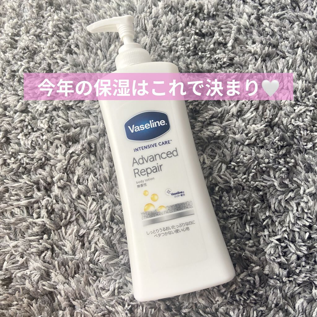 夏も保湿は大切ですね♪ヴァセリンのアドバンスドリペアボディローションです。みずみずしく伸びが良いクリームで、ベタつかずしっとりです☺️お風呂上がりに塗っています。無香料なので使いやすいです。どんな肌質の人にも良いと思います🫧無香料、弱酸性、低...