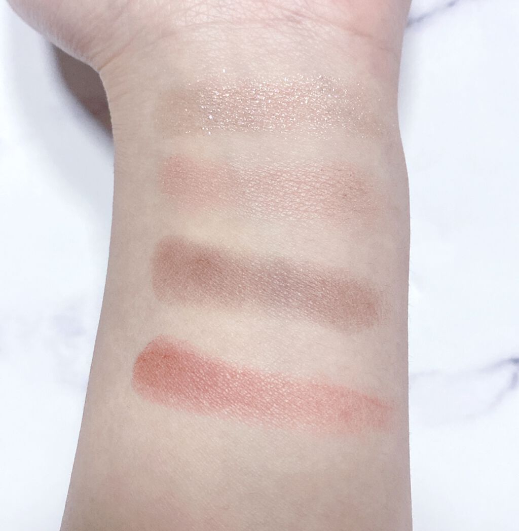 - シルキースフレアイズの姉妹品♡ 肌に溶け込むような透けマットシャドウ 透け感のある柔らかい仕上がりになるマット3色と、透け発色の繊細ラメ1色のパレットシャドウ♡ 完全マットアイや、ラメ×マットアイなど、メイクのパターンを楽しみましょう!
