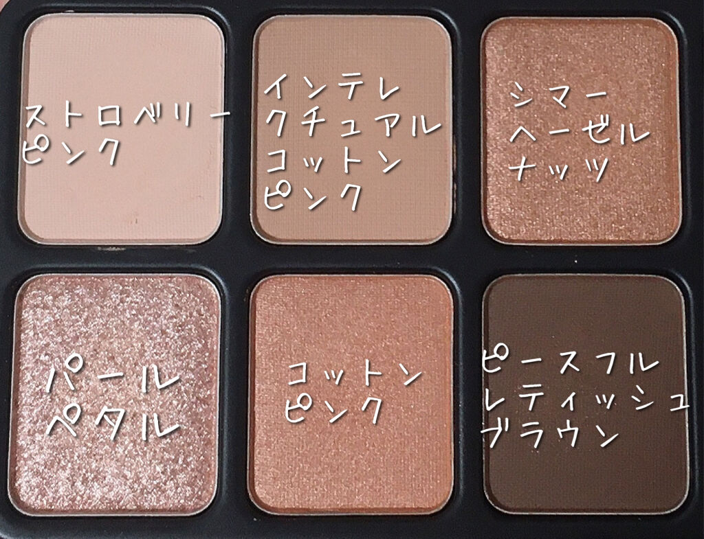 100円で9色のアイパレットは凄いです。 黒い枠の背が高く、指でアイシャドウを取ろうとすると爪が引っ掛かり取りにくいのが難点。 発色はまずます。結構薄づきです。色味のせいかイエベ秋の私には物足りなさな発色。 大絶賛まではいかなかったけど、普通に使えるパレットです。