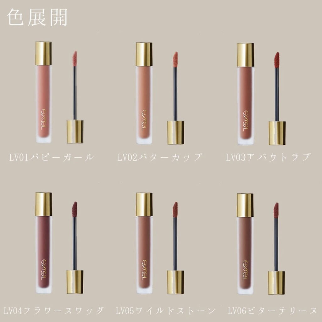 - 「エクセル リップベルベティスト」は、ふわっとなめらかな濃密発色で唇に品を添える、新感覚レアベルベットリップです。ベルベットのようにふんわりなめらかなテクスチャーで、粉っぽさのない“レア感マット”な仕上がりを叶えます。唇にフィットする密着コーティング処方で、長時間ヨレずにつけたての色が長持ちします。ハチミツ※、ワセリン※、アルガンオイル*を贅沢配合し、唇の潤いを守りカサつきを防ぎます。 唇に品を添える、洗練された6色のカラーラインナップ。シックで印象的ながらも日常使いに適した、絶妙なカラーバランスにこだわりました。しっかり発色させて色気のある唇に、ぼかしを効かせてふんわりナチュラルな印象にも仕上げられます。 ※ 保湿成分 * アルガニアスピノサ核油(保湿成分)