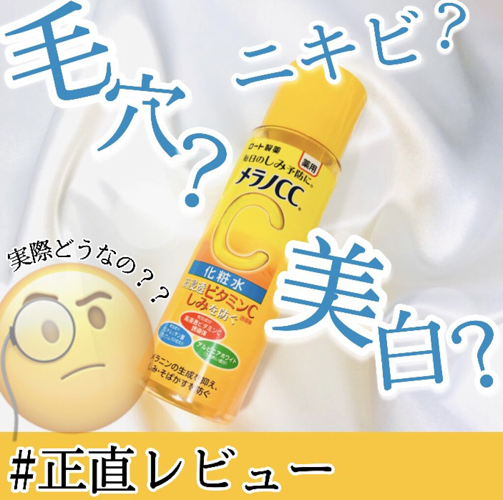 - 「メラノCC 薬用しみ対策 美白化粧水」は、顔全体にうるおいを与えながら、しみ対策できる薬用美白化粧水。 美白有効成分高浸透ビタミンC誘導体*1が角質層すみずみまで浸透し、メラニンの生成を抑え、しみ・そばかすを防ぎ、透明感のある肌へと導きます。 また、抗炎症成分*2と3種のうるおい成分*3を配合。ニキビ痕が気になる肌にもうるおいを与え、肌を整えます。 さわやかな柑橘系の香りです。 *1:3-O-エチルアスコルビン酸 *2:グリチルリチン酸ジカリウム *3:アルピニアホワイト、レモンエキス、グレープフルーツエキス