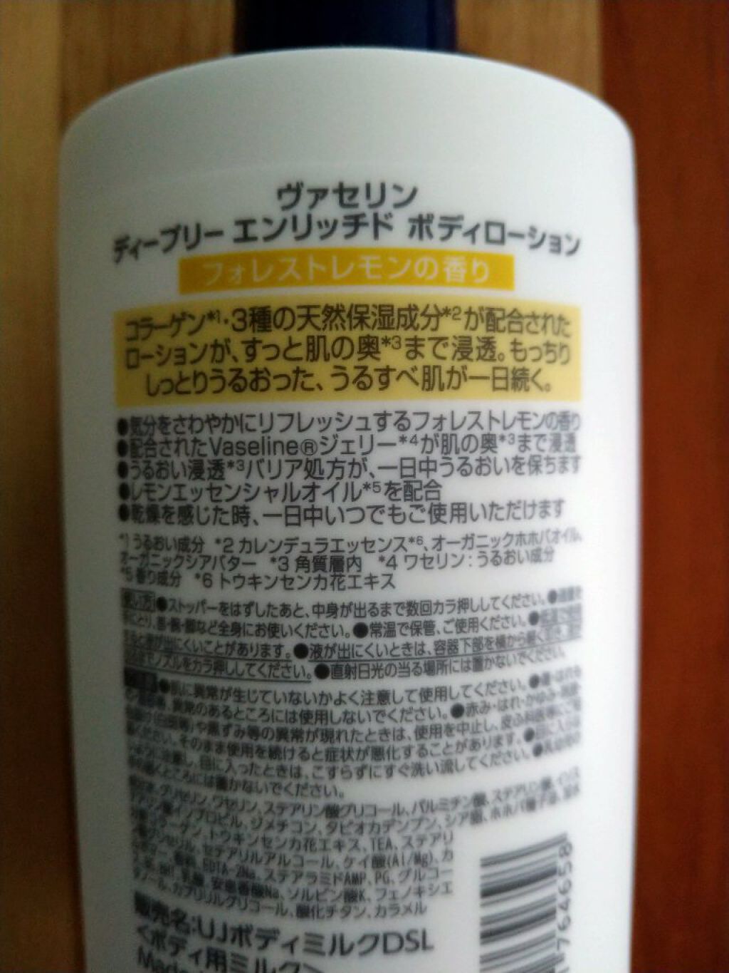 商品詳細情報ヴァセリン ディープリーエンリッチド ボディローション フォレストレモンの香り