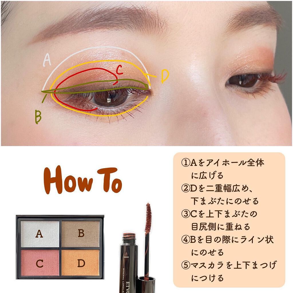 春らしい淡いピーチカラーが魅力的なETVOSのスプリングコレクション。可愛すぎて購入😍 ブルベでも使えるオレンジ🍊 左下はマットなピーチベージュ。淡いカラーで優しく見せてくれます。 全体的にはふんわりした柔らかい印象の目元になります。春メイクにぴったり💕