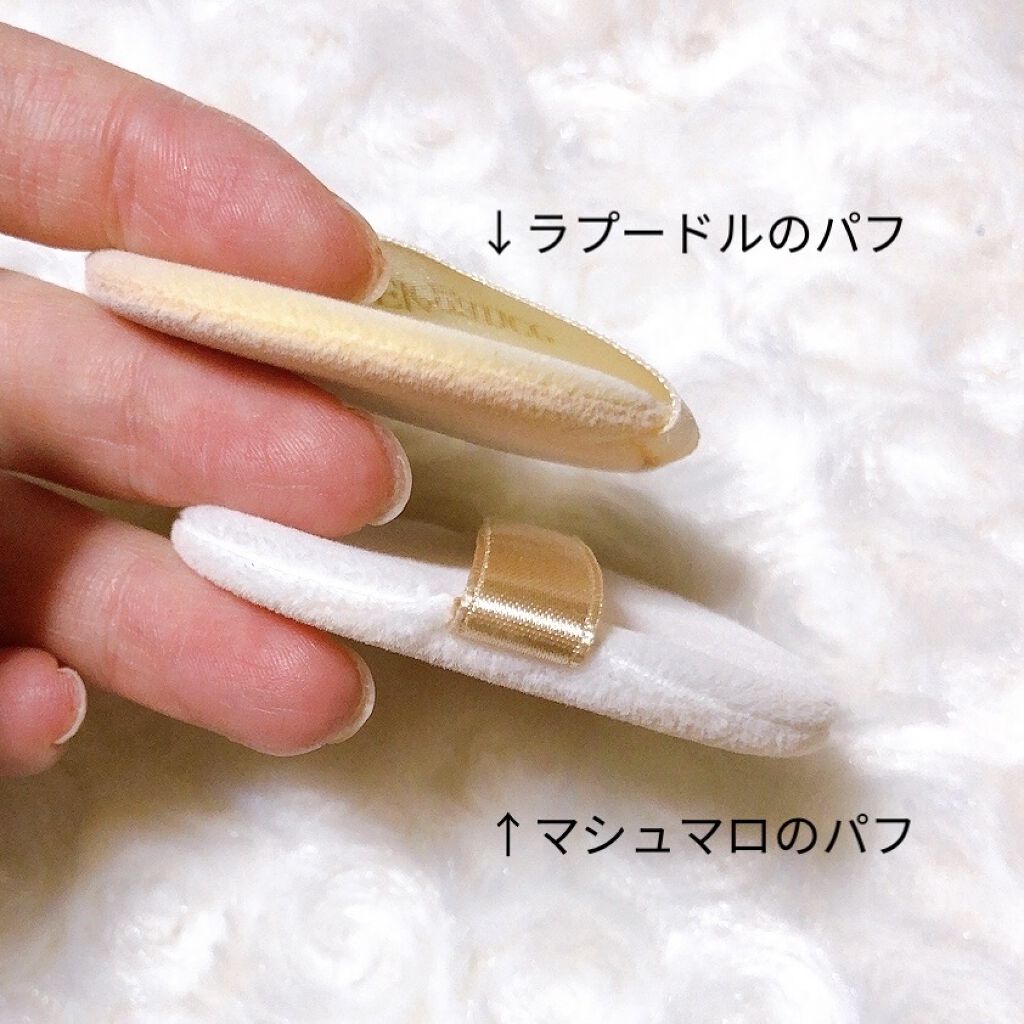 ○ラプードルの方がトーンアップ感がある ○サラサラ感もラプードルに軍配 ○付属パフのペラペラ度はどっこいどっこい ○マスクにはマシュマロのほうが付いちゃう ○割れにくそうさはマシュマロフィニッシュパウダー
