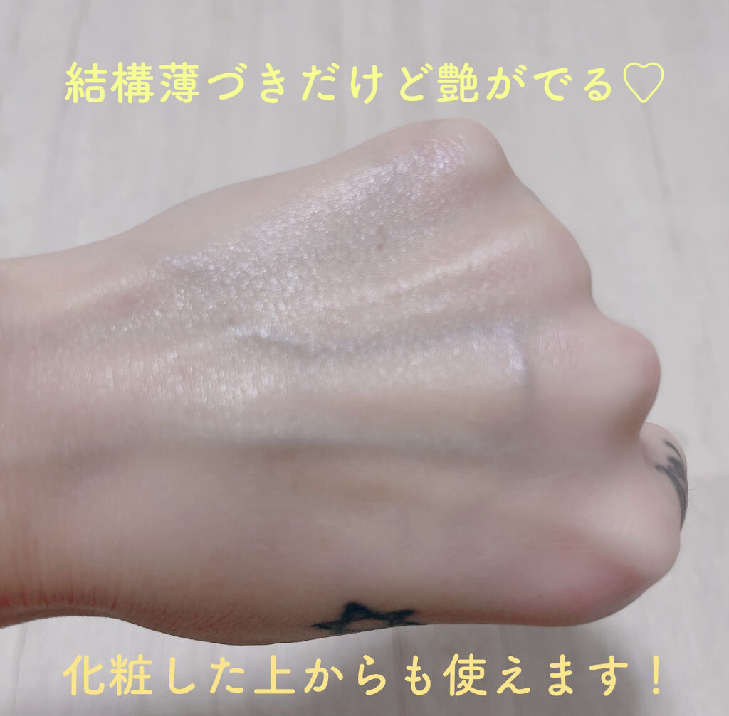UVカットもできて、エイジングケアもできるなんてすごすぎる!! 薄づきでツヤが出てトーンアップ効果もあり♪ ひんやりしてるので夏場に良いかも! 若干パフにつける時がうまくできず難しいかも… 慣れれば綺麗にムラなくできます! 保湿もされるので乾燥しらず。 化粧の上からも使えるのがポイントです♪