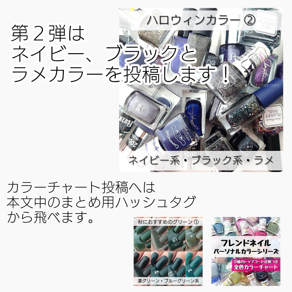 ⚠️更新版投稿しました⚠️こちらのハッシュタグからとべます▶#カラーチャートluchasroom完全保存版‼️ダイソーでネイルポリッシュを買うときに必携!ダイソーの3大ネイルポリッシュ、GENEネイル、フレンドネイル、ソンプチューの全色カラー...