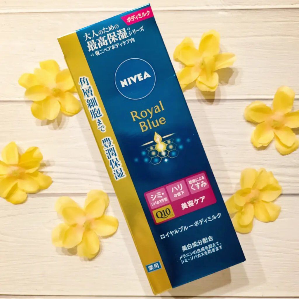 ロイヤルと名前がついているだけあって、高級感があり、ニベアのシリーズでもワンランク上の印象です✨ ベタつかないのに、高保湿なので、ふくらはぎなんかも、恥ずかしながら乾燥がひどく粉をふいたりしてたのも、しっとりとした肌になりました! 角層うるおい成分にセラミド、美白成分にビタミンC誘導体配合、コエンザイムQ10、ヒアルロン酸も配合されているので、シミ、そばかすの予防や、ハリの低下、乾燥によるくすみが気になる方などにもぜひ使ってもらいたいです✨